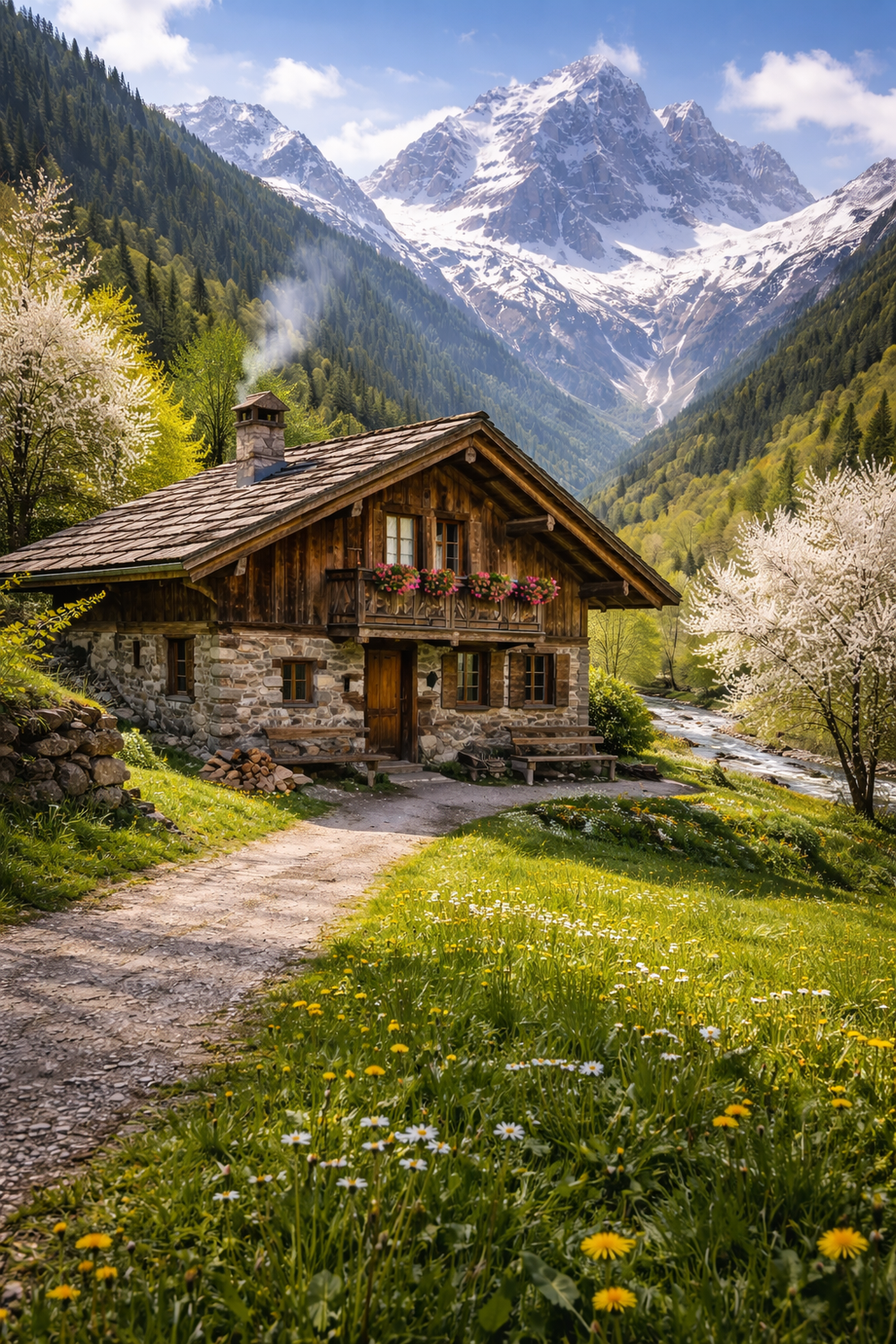 Les meubles Grenier Alpin en bois massif allient simplicité et robustesse reflétant l'harmonie entre confort et traditions montagnardes.